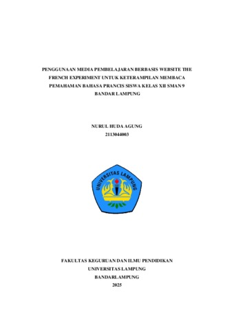 NURUL, HUDA AGUNG (2025) THE USE OF WEBSITE-BASED LEARNING MEDIA THE FRENCH EXPERIMENT FOR FRENCH LANGUAGE READING COMPREHENSION SKILLS OF GRADE XII STUDENTS OF SMAN 9 BANDAR LAMPUNG. FAKULTAS KEGURUAN DAN ILMU PENDIDIKAN , UNIVERSITAS LAMPUNG.