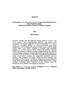 Kemajuan teknologi telah memungkinkan berbagai platform e-commerce dan social commerce untuk mengintegrasikan fitur-fitur yang menarik untuk menjangkau basis konsumen yang lebih luas, salah satunya adalah live streaming. TikTok Live merupakan platform live streaming terkemuka yang banyak dipergunakan untuk membeli serta menjual berbagai barang, termasuk produk fashion, seperti brand OTSKY. Penelitian ini bertujuan untuk menyelidiki pengaruh live streaming shopping TikTok terhadap niat pembelian konsumen OTSKY dari Generasi Z di Bandar Lampung. Populasi penelitian ini terdiri dari individu Generasi Z di Bandar Lampung yang sebelumnya pernah menonton live streaming OTSKY di TikTok Live. Penelitian ini menerapkan teknik pengambilan sampel non-probability sampling dan menggunakan pendekatan purposive sampling, yang melibatkan 130 sampel. Sebagai penelitian kuantitatif, data dikumpulkan melalui kuesioner. Penelitian ini menggunakan metode analisis data berupa regresi linier berganda, yang dilakukan melalui bantuan SPSS. Temuan penelitian menunjukkan bahwa kredibilitas streamer, kekayaan media, dan interaktivitas secara signifikan memengaruhi niat pembelian. Kata Kunci: Live Streaming Shopping, Kredibilitas Streamer, Kekayaan Media, Interaktivitas, Niat Beli, OTSKY Technological advancements have empowered various e-commerce and social commerce platforms to integrate compelling features, reaching a broader consumer base. Among these, live streaming stands out. TikTok Live is a leading live streaming platform extensively used for buying and selling diverse goods, including fashion products, such as the Otsky brand. This study aims to investigate the influence of TikTok live stream shopping on the purchase intention of Otsky consumers from Generation Z in Bandar Lampung. The population for this research consists of Generation Z individuals in Bandar Lampung who have previously watched Otsky's live streams on TikTok Live. This study employs a non- probability sampling technique with a purposive sampling approach, involving 130 samples. As a quantitative study, data were collected through questionnaires. The data analysis method utilized in this research is multiple linear regression, performed with SPSS. The findings indicate streamer credibility, media richness, and interactivity significantly influence purchase intention. Keywords: Live Streaming Shopping, Streamer Credibility, Media Richness, Interactivity, Purchase Intention, OTSKY