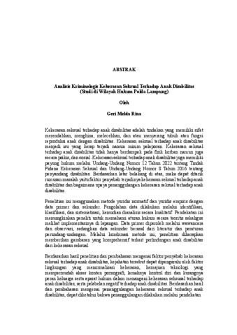 Geri , Melda Rina (2025) Analisis Kriminologis Kekerasan Seksual Terhadap Anak Disabilitas (Studi di Wilayah Hukum Polda Lampung). FAKULTAS HUKUM, UNIVERSITAS LAMPUNG.