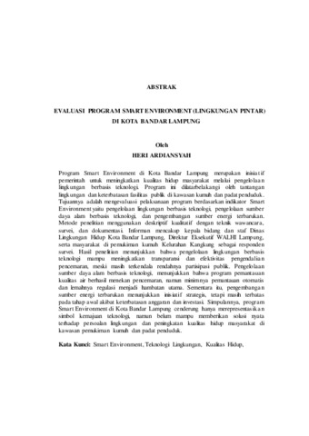 HERI , ARDIANSYAH (2025) EVALUASI PROGRAM SMART ENVIRONMENT (LINGKUNGAN PINTAR) DI KOTA BANDAR LAMPUNG. FAKULTAS ILMU SOSIAL DAN ILMU POLITIK, UNIVERSITAS LAMPUNG.