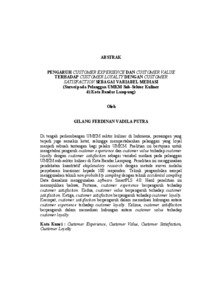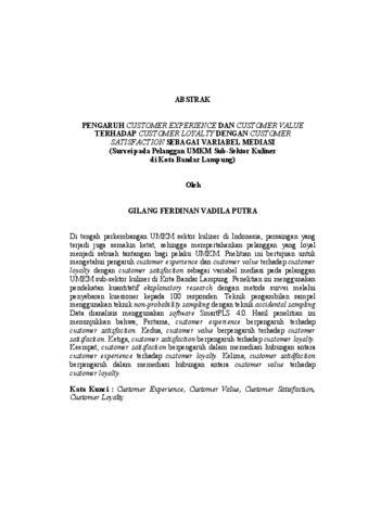Gilang , Ferdinan Vadila Putra (2025) PENGARUH CUSTOMER EXPERIENCE DAN CUSTOMER VALUE TERHADAP CUSTOMER LOYALTY DENGAN CUSTOMER SATISFACTION SEBAGAI VARIABEL MEDIASI (Survei pada Pelanggan UMKM Sub-Sektor Kuliner di Kota Bandar Lampung). FAKULTAS ILMU SOSIAL DAN ILMU POLITIK, UNIVERSITAS LAMPUNG.