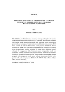 GUSTIRA , FEBRI SAZITA (2025) PENGARUH PENGGUNAAN MEDIA POSTER TERHADAP KEMAMPUAN BERPIKIR KRITIS MATA PELAJARAN IPAS KELAS V SDIT AL-MUHSIN METRO. FAKULTAS KEGURUAN DAN ILMU PENDIDIKAN , UNIVERSITAS LAMPUNG.