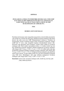 DESRIO ADI , PAMUNGKAS (2025) PENGARUH LATIHAN PLYOMETRIK DOUBLE LEG CONE HOP DAN SPLIT JUMP TERHADAP KECEPATAN TENDANGAN SABIT PENCAK SILAT PADA SISWA-SISWI DI SMP MUHAMMADIYAH AMBARAWA. FAKULTAS KEGURUAN DAN ILMU PENDIDIKAN, UNIVERSITAS LAMPUNG.