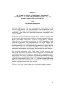 NILAI MORAL LEM TRADISI AKKEN WAREI DI MASYARAKAT BAKUNG UDIK JAMOW IMPLIKASINOW LEM PEMBELAJARAN BAHASA LAMPUNG DI SMP