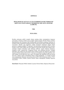 Nur Anisa, - (2025) PENGARUH KUALITAS LAYANAN PERMEN MANIS TERHADAP KEPUASAN MASYARAKAT DI DISDUKCAPIL KOTA BANDAR LAMPUNG. FAKULTAS ILMU SOSIAL DAN ILMU POLITIK, UNIVERSITAS LAMPUNG.