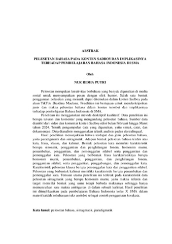 Nur Ridha Putri, - (2025) PELESETAN BAHASA PADA KONTEN SADBOY DAN IMPLIKASINYA TERHADAP PEMBELAJARAN BAHASA INDONESIA DI SMA. FAKULTAS KEGURUAN DAN ILMU PENDIDIKAN, UNIVERSITAS LAMPUNG.