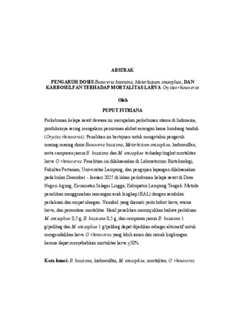 PUPUT , FITRIANA (2025) PENGARUH DOSIS Beauveria bassiana, Metarhizium anisopliae, DAN KARBOSULFAN TERHADAP MORTALITAS LARVA Oryctes rhinoceros. FAKULTAS PERTANIAN, UNIVERSITAS LAMPUNG.