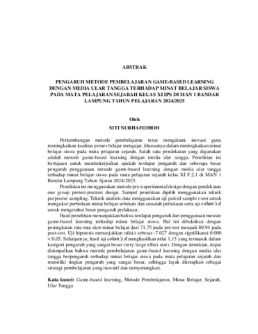 PENGARUH METODE PEMBELAJARAN GAME-BASED LEARNING DENGAN MEDIA ULAR TANGGA TERHADAP MINAT BELAJAR SISWA PADA MATA PELAJARAN SEJARAH KELAS XI IPS DI MAN 1 BANDAR LAMPUNG TAHUN PELAJARAN 2024/2025