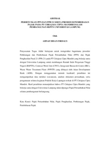 AHNAF IHSAN FIRDAUS, - (2025) PERHITUNGAN PPN DAN PPH 21 SERTA PROSEDUR PEMBEBASAN PAJAK PADA PT CIRIAJASA CIPTA MANDIRI DALAM PEMBANGUNAN RSPTN UNIVERSITAS LAMPUNG. [Diploma/Tugas Akhir]