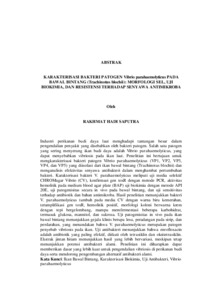 RAKHMAT , HADI SAPUTRA (2025) KARAKTERISASI BAKTERI PATOGEN Vibrio parahaemolyticus PADA BAWAL BINTANG (Trachinotus blochii): MORFOLOGI SEL, UJI BIOKIMIA, DAN RESISTENSI TERHADAP SENYAWA ANTIMIKROBA. Masters thesis, UNIVERSITAS LAMPUNG .