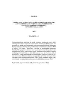 OI’ , KURNIYATI (2025) EFEKTIVITAS PENGGUNAAN MEDIA AUGMENTED REALITY (AR) UNTUK MENINGKATKAN PEMAHAMAN PESERTA DIDIK DALAM PELAJARAN IPAS DI KELAS IV SD NEGERI 1 BRAJA SAKTI. FAKULTAS KEGURUAN DAN ILMU PENDIDIKAN, UNIVERSITAS LAMPUNG.