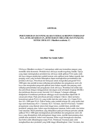 Ubi kayu (Manihot esculenta C) merupakan salah satu komoditas pangan yang memiliki nilai ekonomis. Produktivitas ubi kayu masih tergolong rendah. Upaya yang dapat meningkatkan produktivitas ubi kayu ialah aplikasi NAA pada setek ubi kayu dengan pemberian jumlah keratan serta aplikasi jenis bahan organik dan panjang setek yang berbeda diharapkan dapat meningkatkan pertumbuhan dan produksi ubi kayu. Percobaan ini bertujuan untuk mengetahui pengaruh NAA 1000 ppm dan jumlah keratan terhadap pertumbuhan dan pengakaran setek ubi kayu dan mengetahui pengaruh aplikasi jenis bahan organik dan panjang setek terhadap pertumbuhan dan pengakaran setek ubi kayu. Penelitian ini terdiri dari dua percobaan dengan menggunakan rancangan acak kelompok lengkap (RAKL) dan perlakuan disusun secara factorial (2x3) dengan 3 ulangan sehingga didapatkan 6 kombinasi perlakuan sehingga secara keseluruhan diperoleh 18 satuan percobaan. Pada percobaan pertama terdapat 2 faktor, faktor pertama konsentrasi auksin NAA (A) yang terdiri dari dua taraf yaitu A1= 0 ppm NAA dan A2= 1000 ppm NAA. Faktor kedua yaitu jumlah keratan (K) yang terdiri dari tiga taraf diantaranya K1= 2 keratan, K2= 3 keratan, dan K3=4 keratan. Variabel pengamatan yang diamati antara lain tinggi tunas, jumlah daun, jumlah akar produktif, panjang akar, bobot segar berangkasan tanaman, bobot umbi, dan bobot total tanaman. Hasil penelitian yang didapatkan pada percobaaan pertama adalah aplikasi NAA 1000 ppm meningkatkan pertumbuhan dan pengakaran setek ubi kayu yang ditunjukkan oleh peningkatan tinggi tunas, jumlah daun,panjang akar, jumlah akar produktif, bobot total tanaman, bobot segar berangkasan tanaman, dan bobot umbi dibandingkan tanpa NAA. Perlakuan 4 keratan pada setek menghasilkan akar produktif yang lebih tinggi dibandingkan 2 dan 3 keratan, danperlakuan 4 keratan menghasilkan bobot umbi yang lebih tinggi dibandingkan 2 keratan, namun tidak berbeda dengan 3 keratan dan tidak terdapat interaksi antara aplikasi NAA dan jumlah keratan dalam mempengaruhi pertumbuhan tunas dan pengakaran setek ubi kayu. Pada percobaan kedua terdapat 2 faktor, Faktor pertama yaitu Panjang Bibit (P) yang terdiri dari 2 taraf yaitu P1= 20 cm dan P2= 30 cm. Faktor kedua yaitu penggunaan bahan organik (O) yang terdiri dari 3 taraf yaitu O1= pupuk kandang (bokashi sapi), O2= pupuk kompos, dan O3= LOB. Hasil penelitian yang didapatkan pada percobaaan kedua adalah aplikasi pupuk kandang sapi menghasilkan jumlah akar produktif, panjang akar, bobot umbi, dan bobot total tanaman yang lebih tinggi dibandingkan aplikasi pupuk kompos dan LOB. Panjang setek tidak mempengaruhi pertumbuhan tunas dan pengakaran setek ubi kayu dan tidak terdapat interaksi antara jenis bahan organik dengan panjang setek dalam mempengaruhi pertumbuhan tunas dan pengakaran setek ubi kayu. Kata Kunci : Auksin, bahan organik, pelukaan, LOB, NAA Cassava (Manihot esculenta C.) is a food commodity with economic value. However, cassava productivity is still relatively low. Effort to improve cassava production include the application of NAA to cassava cuttings with the wounding of the planting material and the application of different types of organic materials and cutting lengths is expected to increase cassava growth and production. This experiment aims to determine the effect of 1000 ppm NAA and the effect of wounding on the growth and rooting of cassava cuttings and to determine the effect of the application of types of organic materials and cutting lengths on the growth and rooting of cassava cuttings. This study consisted of two experiments using a completely randomized block design (RCBD) and the treatments were arranged factorially (2x3) with 3 replications so that 6 treatment combinations were obtained so that overall 18 experimental units were obtained. In the first experiment there were 2 factors, the first factor was the concentration of NAA auxin (A) which consisted of two levels, A1 = 0 ppm NAA and A2 = 1000 ppm NAA. The second factor is the wounding (K) which consists of three levels including K1 = 2 wounding, K2 = 3 wounding, and K3 = 4 wounding. Observational variables included shoot height, number of leaves, number of productive roots, root length, fresh plant weight, tuber weight, and total plant weight. The results of the research obtained in the first experiment were that the application of 1000 ppm NAA increased the growth and rooting of cassava cuttings as indicated by an increase in shoot height, number of leaves, root length, number of productive roots, total plant weight, fresh weight of plant stems, and tuber weight compared to without NAA. The 4 wounding treatment on cuttings produced higher productive roots than 2 and 3 wounding, and the 4 wounding treatment produced a higher tuber weight than 2 wounding, but it was not different from 3 wounding and there was no interaction between NAA applicationand the effect of wounding in influencing shoot growth and rooting of cassava cuttings. In the second experiment there were 2 factors, the first factor is the length of the seedling (P) which consists of 2 levels, P1 = 20 cm and P2 = 30 cm. The second factor is the use of organic materials (O) which consists of 3 levels, O1 = manure (cow), O2 = compost, and O3 = LOB. The results of the study obtained in the second experiment were that the application of cow manure produced a higher number of productive roots, root length, tuber weight, and total plant weight compared to the application of compost and LOB. The length of the cutting did not affect the growth of shoots and rooting of cassava cuttings and there was no interaction between the type of organic material and the length of the cutting in influencing the growth of shoots and rooting of cassava cuttings. Keyword: Auxin, LOB, NAA, organic matter, wounding
