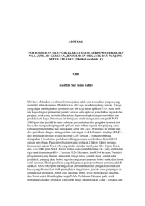KHOFIFAH, NUR INDAH SAFITRI (2025) PERTUMBUHAN DAN PENGAKARAN SEBAGAI RESPON TERHADAP NAA, JUMLAH KERATAN, JENIS BAHAN ORGANIK DAN PANJANG SETEK UBI KAYU (Manihot esculenta. C). Masters thesis, UNIVERSITAS LAMPUNG .