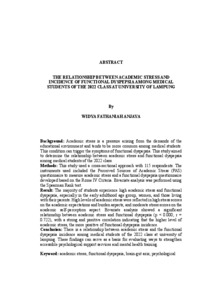 WIDYA , FATHANIAH ANJAYA (2025) HUBUNGAN ANTARA STRES AKADEMIK DENGAN KEJADIAN DISPEPSIA FUNGSIONAL PADA MAHASISWA ANGKATAN 2022 PROGRAM STUDI PENDIDIKAN DOKTER UNIVERSITAS LAMPUNG. FAKULTAS KEDOKTERAN, UNIVERSITAS LAMPUNG.