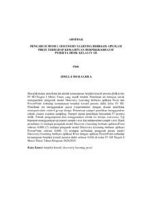 ADELLA SHALSABILA, - (2025) PENGARUH MODEL DISCOVERY LEARNING BERBASIS APLIKASI PREZI TERHADAP KEMAMPUAN BERPIKIR KREATIF PESERTA DIDIK KELAS IV SD. FAKULTAS KEGURUAN DAN ILMU PENDIDIKAN, UNIVERSITAS LAMPUNG.