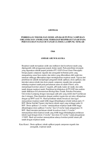 Ambar Arum Kaloka, - (2025) PERBEDAAN TEKNIK DAN DOSIS APLIKASI PUPUK CAMPURAN ORGANIK DAN ANORGANIK TERHADAP RESPIRASI TANAH PADA PERTANAMAN NANAS DI TANAH ULTISOL LAMPUNG TENGAH. FAKULTAS PERTANIAN, UNIVERSITAS LAMPUNG.