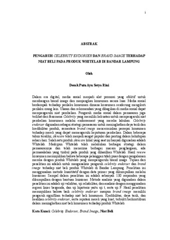PENGARUH CELEBRITY ENDORSER DAN BRAND IMAGE TERHADAP NIAT BELI PADA PRODUK WHITELAB DI BANDAR LAMPUNG