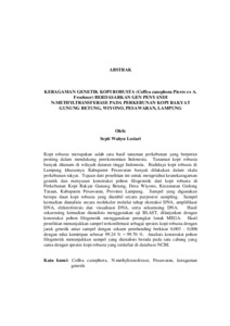 Septi Wahyu Lestari, - (2025) KERAGAMAN GENETIK KOPI ROBUSTA (Coffea canephora Pierre ex A. Froehner) BERDASARKAN GEN PENYANDI N-METHYLTRANSFERASE PADA PERKEBUNAN KOPI RAKYAT GUNUNG BETUNG, WIYONO, PESAWARAN, LAMPUNG. FAKULTAS MATEMATIKA DAN ILMU PENGETAHUAN ALAM, UNIVERSITAS LAMPUNG.