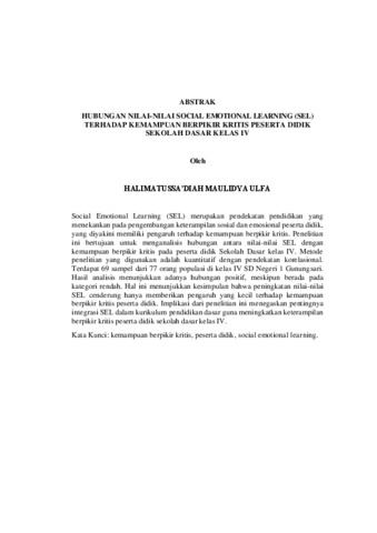 Halimatussa'diah Maulidya Ulfa , - (2025) HUBUNGAN NILAI-NILAI SOCIAL EMOTIONAL LEARNING (SEL) TERHADAP KEMAMPUAN BERPIKIR KRITIS PESERTA DIDIK SEKOLAH DASAR KELAS IV. FAKULTAS KEGURUAN DAN ILMU PENDIDIKAN, UNIVERSITAS LAMPUNG.