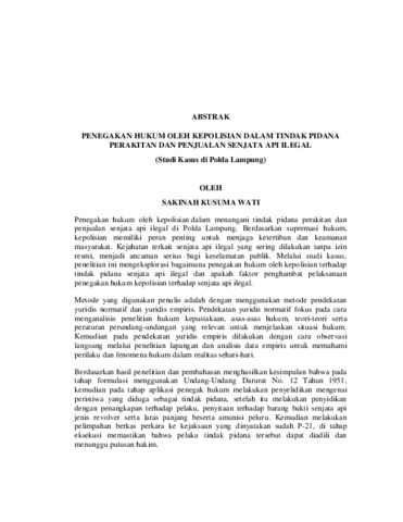 SAKINAH KUSUMA WATI, - (2025) PENEGAKAN HUKUM OLEH KEPOLISIAN DALAM TINDAK PIDANA PERAKITAN DAN PENJUALAN SENJATA API ILEGAL (Studi Kasus di Polda Lampung). FAKULTAS HUKUM, UNIVERSITAS LAMPUNG.