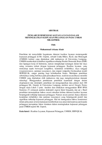 Penelitian ini menyelidiki bagaimana dimensi kualitas layanan memengaruhi kepuasan pelanggan di Mr. Geprek, sebuah Usaha Mikro, Kecil, dan Menengah (UMKM) kuliner yang dijalankan oleh mahasiswa di Universitas Lampung. UMKM memberikan kontribusi signifikan terhadap Produk Domestik Bruto (PDB) dan lapangan kerja di Indonesia, namun menghadapi tantangan dalam hal daya saing, terutama terkait dengan kepuasan pelanggan. Kualitas layanan, yang mencakup aspek berwujud (tangibles), keandalan (reliability), daya tanggap (responsiveness), jaminan (assurance), dan empati (empathy) berdasarkan model SERVQUAL, sangat penting bagi keberhasilan bisnis. Meskipun penelitian sebelumnya sering berfokus pada perusahaan besar, studi ini secara khusus meneliti UMKM yang dijalankan oleh mahasiswa dan juga mengikutsertakan dampak teknologi. Menggunakan pendekatan penelitian kuantitatif dengan desain eksplanatori dan deskriptif, penelitian ini mengumpulkan data primer dari 100 pelanggan Mr. Geprek di Universitas Lampung melalui survei Google Forms dengan skala Likert 5 poin. Analisis data dilakukan menggunakan IBM SPSS Statistics 27, termasuk analisis deskriptif, regresi linier berganda, dan uji t. Hasil penelitian menunjukkan bahwa secara simultan kelima dimensi kualitas layanan berpengaruh terhadap kepuasan pelanggan. Namun secara parsial, hanya dimensi keandalan (reliability) dan jaminan (assurance) yang berpengaruh positif dan signifikan terhadap kepuasan pelanggan. Hal ini menegaskan bahwa konsistensi dalam pelayanan serta kemampuan memberikan rasa aman dan kepercayaan kepada pelanggan merupakan faktor dominan dalam meningkatkan kepuasan pelanggan pada UMKM seperti Mr. Geprek. Kata kunci : Kualitas Layanan, Kepuasan Pelanggan, UMKM, SERVQUAL This study investigates how service quality dimensions influence customer satisfaction at Mr. Geprek, a culinary Micro, Small, and Medium Enterprise (MSME) at Lampung University. Small and Medium Enterprises significantly contribute to Indonesia's GDP and employment but face challenges in competitiveness, particularly regarding customer satisfaction. Service quality, encompassing tangibles, reliability, responsiveness, assurance, and empathy (SERVQUAL model), is crucial for business success. While previous research often focused on larger firms, this study specifically examines a student-run MSME and incorporates the impact of technology. Employing a quantitative research approach with an explanatory and descriptive design, the study collected primary data from 100 Mr. Geprek customers at Lampung University using Google Forms surveys and a 5-point Likert scale. Data analysis was performed using IBM SPSS Statistics 27, including descriptive analysis, multiple linear regression, and t-tests. The results reveal that, simultaneously, all five service quality dimensions influence customer satisfaction. However, partially, only reliability and assurance have a positive and significant effect. This finding highlights that maintaining consistency in service delivery and ensuring trust and security are the dominant factors in enhancing customer satisfaction for MSMEs like Mr. Geprek. Keywords : Service Quality, Customer Satisfaction, MSME, SERVQUAL