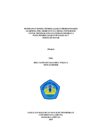 RIZA NAFISAH , SALSABILA WIJAYA (2025) PENERAPAN MODEL PEMBELAJARAN PROBLEM BASED LEARNING (PBL) BERBANTUAN MEDIA INFOGRAFIS UNTUK MENINGKATKAN LITERASI MEMBACA PADA PEMBELAJARAN IPAS KELAS V SEKOLAH DASAR. FAKULTAS KEGURUAN DAN ILMU PENDIDIKAN, UNIVERSITAS LAMPUNG.