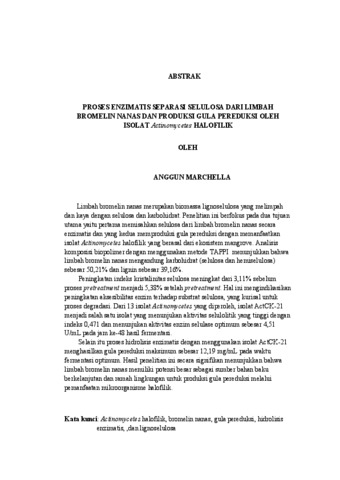 ANGGUN , MARCHELLA (2025) PROSES ENZIMATIS SEPARASI SELULOSA DARI LIMBAH BROMELIN NANAS DAN PRODUKSI GULA PEREDUKSI OLEH ISOLAT Actinomycetes HALOFILIK. FAKULTAS MATEMATIKA DAN ILMU PENGETAHUAN ALAM, UNIVERSITAS LAMPUNG.