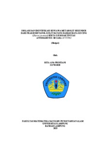 Rita , Ana Pristiani (2025) ISOLASI DAN IDENTIFIKASI SENYAWA METABOLIT SEKUNDER DARI FRAKSI METANOL KULIT BATANG DAMAR MATA KUCING (Shorea javanica) SERTA UJI BIOAKTIVITAS ANTIDIABETES SECARA IN VITRO. FAKULTAS MATEMATIKA DAN ILMU PENGETAHUAN ALAM, UNIVERSITAS LAMPUNG.