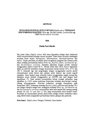 PENGARUH EKSTRAK JINTAN HITAM (Nigella sativa) TERHADAP PERTUMBUHAN BAKTERI Vibrio sp., Bacillus subtilis, Lactobacillus sp., DAN Saccharomyces cerevisiae