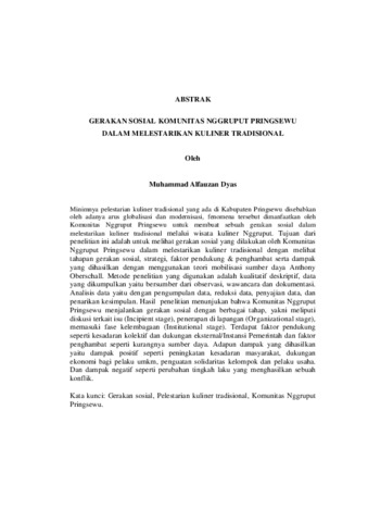 Muhammad , Alfauzan Dyas (2025) GERAKAN SOSIAL KOMUNITAS NGGRUPUT PRINGSEWU DALAM MELESTARIKAN KULINER TRADISIONAL. FAKULTAS ILMU SOSIAL DAN ILMU POLITIK, UNIVERSITAS LAMPUNG.