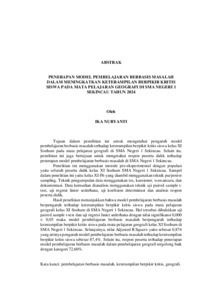Ika Nuryanti , - (2025) PENERAPAN MODEL PEMBELAJARAN BERBASIS MASALAH DALAM MENINGKATKAN KETERAMPILAN BERPIKIR KRITIS SISWA PADA MATA PELAJARAN GEOGRAFI DI SMA NEGERI 1 SEKINCAU TAHUN 2024. FAKULTAS KEGURUAN DAN ILMU PENDIDIKAN, UNIVERSITAS LAMPUNG.