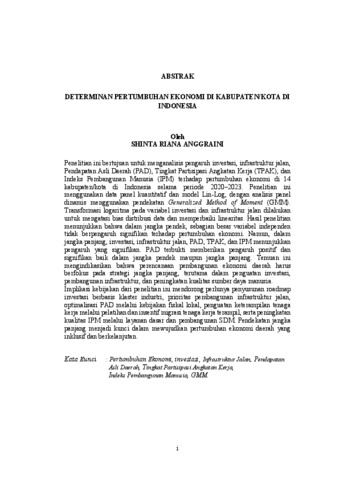 SHINTA , RIANA ANGGRAINI (2025) DETERMINAN PERTUMBUHAN EKONOMI DI KABUPATEN/KOTA DI INDONESIA. Masters thesis, UNIVERSITAS LAMPUNG .