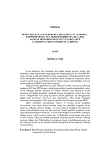 NIRMALA , SARI (2025) PENGARUH KEAKTIFAN BERORGANISASI DAN STATUS SOSIAL EKONOMI ORANG TUA TERHADAP PRESTASI BELAJAR DENGAN MEMERHATIKAN MOTIVASI BELAJAR MAHASISWA FKIP UNIVERSITAS LAMPUNG. FAKULTAS KEGURUAN DAN ILMU PENDIDIKAN, UNIVERSITAS LAMPUNG.