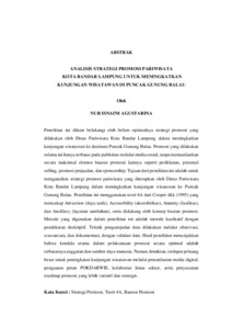 Nur , Isnaini Agustarina (2025) ANALISIS STRATEGI PROMOSI PARIWISATA KOTA BANDAR LAMPUNG UNTUK MENINGKATKAN KUNJUNGAN WISATAWAN DI PUNCAK GUNUNG BALAU. FAKULTAS ILMU SOSIAL DAN ILMU POLITIK, UNIVERSITAS LAMPUNG.