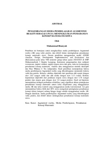 Muhammad, Riansyah (2025) PENGEMBANGAN MEDIA PEMBELAJARAN AUGMENTED REALITY SEBAGAI UPAYA MENINGKATKAN PEMAHAMAN KONSEP MATEMATIS SISWA. Masters thesis, UNIVERSITAS LAMPUNG .