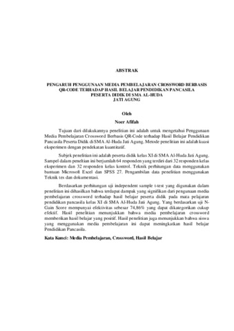 Tujuan dari dilakukannya penelitian ini adalah untuk mengetahui Penggunaan Media Pembelajaran Crossword Berbasis QR-Code terhadap Hasil Belajar Pendidikan Pancasila Peserta Didik di SMA Al-Huda Jati Agung. Metode penelitian ini adalah kuasi eksperimen dengan pendekatan kuantitatif. Subjek penelitian ini adalah peserta didik kelas XI di SMA Al-Huda Jati Agung. Sampel dalam peneltian ini berjumlah 64 responden yang terdiri dari 32 responden kelas eksperimen dan 32 responden kelas kontrol. Teknik perhitungan data menggunakan bantuan Microsoft Excel dan SPSS 27. Pengambilan data penelitian menggunakan Teknik tes dan dokumentasi. Berdasarkan perhitungan uji independent sample t-test yang digunakan dalam penelitian ini dihasilkan bahwa terdapat dampak yang signifikan dari pengunaan media pembelajaran crossword terhadap hasil belajar peserta didik pada mata pelajaran pendidikan pancasila kelas XI di SMA Al-Huda Jati Agung. Yang berdasarkan uji N- Gain Score mempunyai efektivitas sebesar 74,86% yang dapat dikategorikan cukup efektif. Hasil penelitian menunjukkan bahwa media pembelajaran crossword memberikan hasil belajar yang positif. Hasil penelitian juga menunjukkan bahwa siswa yang menggunakan media pembelajaran ini dapat meningkatkan hasil belajar Pendidikan Pancasila. Kata Kunci: Media Pembelajaran, Crossword, Hasil Belajar The purpose of this study was to determine the use of QR-Code Based Crossword Learning Media on Pancasila Education Learning Outcomes of Students at Al-Huda Jati Agung High School. This research method is a quasi-experiment with a quantitative approach. The subjects of this study were grade XI students at SMA Al-Huda Jati Agung. The sample in this study amounted to 64 respondents consisting of 32 experimental class respondents and 32 control class respondents. Data calculation techniques using the help of Microsoft Excel and SPSS 27. Data collection for the study was conducted using testing and documentation techniques. Based on the calculation of the independent sample t-test test used in this study, it was found that there was a significant impact of the use of crossword learning media on the learning outcomes of students in Pancasila education class XI at SMA Al-Huda Jati Agung. Which based on the N-Gain Score test has an effectiveness of 74.86% which can be categorized as quite effective. The results showed that crossword learning media provided positive learning outcomes. The results also show that students who use this learning media can improve the learning outcomes of Pancasila Education. Keywords: Learning Media, Crossword, Learning Outcomes