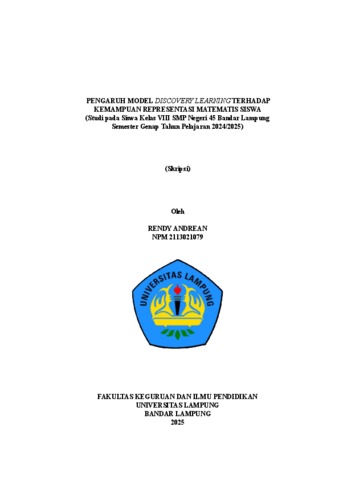 RENDY , ANDREAN (2025) PENGARUH MODEL DISCOVERY LEARNING TERHADAP KEMAMPUAN REPRESENTASI MATEMATIS SISWA (Studi pada Siswa Kelas VIII SMP Negeri 45 Bandar Lampung Semester Genap Tahun Pelajaran 2024/2025). FAKULTAS KEGURUAN DAN ILMU PENDIDIKAN, UNIVERSITAS LAMPUNG.