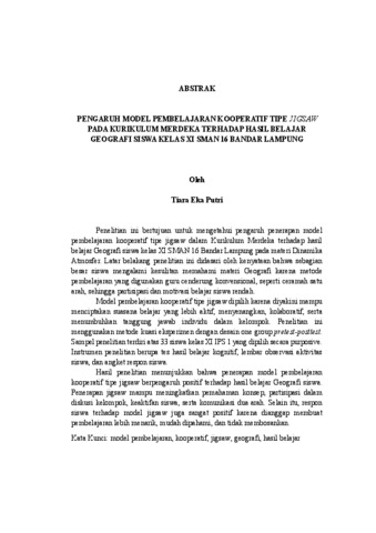 Tiara , Eka Putri (2025) PENGARUH MODEL PEMBELAJARAN KOOPERATIF TIPE JIGSAW PADA KURIKULUM MERDEKA TERHADAP HASIL BELAJAR GEOGRAFI SISWA KELAS XI SMAN 16 BANDAR LAMPUNG. FAKULTAS KEGURUAN DAN ILMU PENDIDIKAN, UNIVERSITAS LAMPUNG.