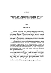 Penelitian ini bertujuan untuk mengetahui pengaruh penerapan model pembelajaran kooperatif tipe jigsaw dalam Kurikulum Merdeka terhadap hasil belajar Geografi siswa kelas XI SMAN 16 Bandar Lampung pada materi Dinamika Atmosfer. Latar belakang penelitian ini didasari oleh kenyataan bahwa sebagian besar siswa mengalami kesulitan memahami materi Geografi karena metode pembelajaran yang digunakan guru cenderung konvensional, seperti ceramah satu arah, sehingga partisipasi dan motivasi belajar siswa rendah. Model pembelajaran kooperatif tipe jigsaw dipilih karena diyakini mampu menciptakan suasana belajar yang lebih aktif, menyenangkan, kolaboratif, serta menumbuhkan tanggung jawab individu dalam kelompok. Penelitian ini menggunakan metode kuasi eksperimen dengan desain one group pretest-posttest. Sampel penelitian terdiri atas 33 siswa kelas XI IPS 1 yang dipilih secara purposive. Instrumen penelitian berupa tes hasil belajar kognitif, lembar observasi aktivitas siswa, dan angket respon siswa. Hasil penelitian menunjukkan bahwa penerapan model pembelajaran kooperatif tipe jigsaw berpengaruh positif terhadap hasil belajar Geografi siswa. Penerapan jigsaw mampu meningkatkan pemahaman konsep, partisipasi dalam diskusi kelompok, keaktifan siswa, serta komunikasi dua arah. Selain itu, respon siswa terhadap model jigsaw juga sangat positif karena dianggap membuat pembelajaran lebih menarik, mudah dipahami, dan tidak membosankan. Kata Kunci: model pembelajaran, kooperatif, jigsaw, geografi, hasil belajar This study aims to determine the effect of applying the jigsaw-type cooperative learning model within the Merdeka Curriculum on the Geography learning outcomes of Grade XI students at SMAN 16 Bandar Lampung, particularly on the topic of Atmospheric Dynamics. The background of this research is based on the fact that many students experience difficulties in understanding Geography material because teachers tend to use conventional one-way lecture methods, which reduce student participation and motivation to learn The jigsaw cooperative learning model was chosen because it is believed to create a more active, enjoyable, and collaborative learning atmosphere while fostering individual responsibility within groups. This study employed a quasi-experimental method with a one-group pretest-posttest design. The sample consisted of 33 students from class XI IPS 1, selected purposively. The research instruments included cognitive learning achievement tests, student activity observation sheets, and questionnaires to measure student responses. The results showed that the application of the jigsaw cooperative learning model had a positive effect on students’ Geography learning outcomes. The jigsaw model enhanced students’ conceptual understanding, participation in group discussions, activeness, and two-way communication. Moreover, students responded very positively to the jigsaw model, as it was considered to make learning more interesting, easier to understand, and less monotonous. Key words: learning model, jigsaw, cooperative learning, geography, learning outcomes
