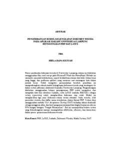 Proses pembuatan dokumen wisuda di Universitas Lampung selama ini dilakukan menggunakan fitur mail merge pada Microsoft Word dan PowerPoint. Metode ini memiliki sejumlah keterbatasan, seperti ketidakkonsistenan tata letak, beban kerja yang tinggi, dan performa aplikasi yang menurun saat menangani data dalam jumlah besar. Untuk mengatasi permasalahan tersebut, penelitian ini mengembangkan sebuah modul kelengkapan dokumen wisuda yang terintegrasi ke dalam sistem informasi akademik (Siakadu) Universitas Lampung. Pengembangan dilakukan menggunakan bahasa pemrograman PHP untuk mengakses dan mengolah data dari database Siakadu, serta LaTeX (melalui MiKTeX) sebagai sistem typesetting untuk menghasilkan dokumen siap cetak. Modul ini menghasilkan tiga jenis dokumen utama secara otomatis: buku wisuda, slide presentasi wisuda, dan daftar nama wisudawan, dalam format PDF. Sistem diuji menggunakan metode User Acceptance Testing (UAT) terhadap admin akademik sebagai pengguna akhir, dan hasil pengujian menunjukkan tingkat kepuasan sebesar 95% dengan kategori “Sangat Memuaskan”. Hal ini menunjukkan bahwa sistem yang dikembangkan mampu meningkatkan efektivitas, efisiensi, dan konsistensi dalam proses penyusunan dokumen wisuda. Kata Kunci: PHP, LaTeX, Siakadu, Dokumen Wisuda, Modul Sistem, UAT. The process of preparing graduation documents at the University of Lampung has traditionally been carried out using the mail merge feature in Microsoft Word and PowerPoint. This method presents several limitations, such as inconsistent layouts, high workload, and decreased application performance when handling large amounts of data. To address these issues, this research developed a graduation document completeness module integrated into the University of Lampung's academic information system (Siakadu). The module was developed using the PHP programming language to access and process data from the Siakadu database, and LaTeX (via MiKTeX) as the typesetting system to generate print-ready documents. This module automatically produces three main documents: graduation book, graduation presentation slides, and graduate name list, all in PDF format. The system was tested using the User Acceptance Testing (UAT) method with academic administrative staff as the end users, and the results showed a satisfaction level of 95%, categorized as "Very Satisfactory." These results indicate that the developed system successfully improves the effectiveness, efficiency, and consistency of the graduation document preparation process. Keywords: PHP, LaTeX, Siakadu, Graduation Documents, System Module, UAT.