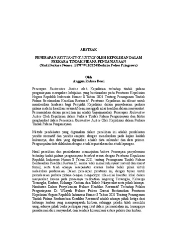 Anggun Rahma , Dewi (2025) PENERAPAN RESTORATIVE JUSTICE OLEH KEPOLISIAN DALAM PERKARA TINDAK PIDANA PENGANIAYAAN (Studi Perkara Nomor: BP/07/VII/2024/Reskrim Polres Pringsewu). FAKULTAS HUKUM, UNIVERSITAS LAMPUNG.