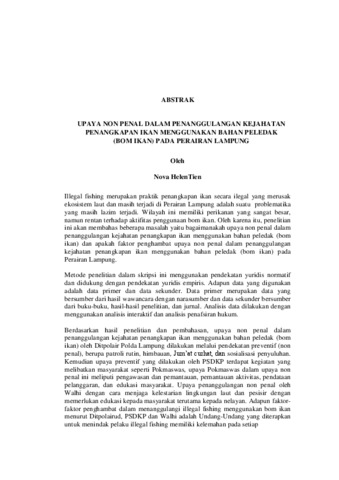 Nova , HelenTien (2025) UPAYA NON PENAL DALAM PENANGGULANGAN KEJAHATAN PENANGKAPAN IKAN MENGGUNAKAN BAHAN PELEDAK (BOM IKAN) PADA PERAIRAN LAMPUNG. FAKULTAS HUKUM, UNIVERSITAS LAMPUNG.