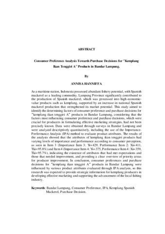 ANALISIS PREFERENSI KONSUMEN TERHADAP KEPUTUSAN PEMBELIAN PRODUK “KEMPLANG IKAN TENGGIRI A” DI BANDAR LAMPUNG