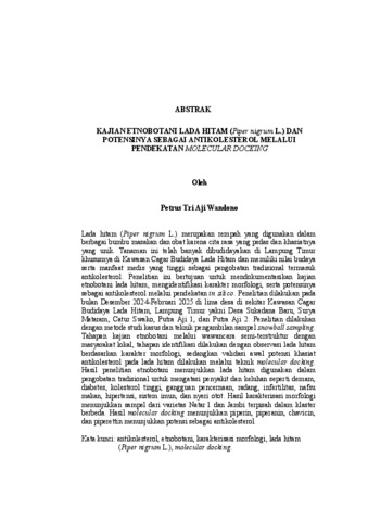 Petrus, Tri Aji Wandono (2025) KAJIAN ETNOBOTANI LADA HITAM (Piper nigrum L.) DAN POTENSINYA SEBAGAI ANTIKOLESTEROL MELALUI PENDEKATAN MOLECULAR DOCKING. FAKULTAS MATEMATIKA DAN ILMU PENGETAHUAN ALAM, UNIVERSITAS LAMPUNG.