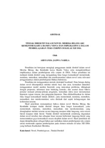 Penelitian ini bertujuan mengkaji penggunaan tindak direktif dalam novel Mereka Bilang Aku Kemlinthi karya Hanifa Vidya serta mengidentifikasi implikasinya dalam pembelajaran teks cerpen di SMA. Fokus penelitian ini meliputi tindak direktif yang mengandung lima fungsi komunikatif memerintah, meminta, memohon, menasihati dan merekomendasi dalam novel serta relevansi penggunaannya dalam pembelajaran Bahasa Indonesia. Penelitian ini menggunakan metode deskriptif kualitatif. Data berupa dialog dalam novel dikumpulkan melalui teknik baca dan catat, kemudian dianalisis menggunakan model analisis heuristik yang mencakup problema, dilengkapi dengan proposisi, informasi latar belakang konteks, dan asumsi dasar bahwa penutur menaati prinsip-prinsip pragmatis, kemudian mitra tutur merumuskan hipotesis tujuan tuturan, dan pengujian hipotesis. Data diklasifikasikan ke dalam lima fungsi komunikatif tindak direktif, yaitu memerintah, meminta, memohon, menasihati, dan merekomendasi, serta ditelaah dari aspek kelangsungan dan keliteralan tuturan. Hasil penelitian menunjukkan bahwa dalam novel Mereka Bilang Aku Kemlinthi terdapat tindak direktif dengan lima fungsi komunikatif, yaitu memerintah, meminta, memohon, menasihati, dan merekomendasi, yang diungkapkan melalui tuturan secara langsung maupun tidak langsung, serta secara literal maupun tidak literal. Tindak direktif memerintah cenderung digunakan dalam novel tersebut dan sebagian besar tuturan berbentuk langsung literal yang mencerminkan gaya komunikasi secara eksplisit dalam novel. Hasil penelitian ini dapat diimplikasikan sebagai bahan ajar tambahan dalam pembelajaran teks cerpen untuk memenuhi capaian pembelajaran pada elemen menulis di kelas XII SMA yang berbasis Kurikulum Merdeka. Kata kunci: Novel, Pembelajaran , Tindak Direktif This study aims to examine the use of directives in the novel " Mereka Bilang Aku Kemlinthi " by Hanifa Vidya and identify its implications for short story teaching in high school. The focus of this study covers directives, which contain five communicative functions: commanding, requesting, pleading, advising, and recommending, in the novel, and the relevance of their use in Indonesian language learning. This study used a qualitative descriptive method. Data in the form of dialogues in the novel were collected through reading and note-taking techniques, then analyzed using a heuristic analysis model that includes the problem, supplemented with propositions, background information, and the basic assumption that the speaker adheres to pragmatic principles. Then, the interlocutors formulate hypotheses about the purpose of the utterance, and test the hypotheses. The data were classified into five communicative functions of directives: commanding, requesting, pleading, advising, and recommending, and examined from the perspective of continuity and literalness. The results of the study indicate that in the novel "Mereka Bilang Aku Kemlinthi," there are directive acts with five communicative functions: ordering, requesting, pleading, advising, and recommending. These are expressed through direct and indirect speech, both literal and non-literal. Commanding directive acts tend to be used in the novel, and most of the utterances are direct and literal, reflecting the novel's explicit communication style. The results of this study can be used as additional teaching materials in short story learning to meet the learning outcomes for writing elements in grade XII high school students based on the Independent Curriculum. Keywords: Novel, Learning, Directive Acts