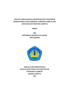 Muhammad , Ghifari Aulia Farabi (2025) STRATEGI SOSIALISASI DALAM MENINGKATKAN PARTISIPASI PEMILIH PEMULA PADA PEMILIHAN GUBERNUR LAMPUNG 2024 (STUDI PADA KPU PROVINSI LAMPUNG). FAKULTAS ILMU SOSIAL DAN ILMU POLITIK, UNIVERSITAS LAMPUNG.