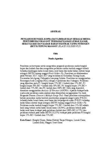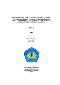 Nanda , Agustina (2025) PENGARUH BUNGKIL KOPRA DAN LIMBAH IKAN SEBAGAI MEDIA PERTUMBUHAN MAGGOT TERHADAP KADAR LEMAK KASAR, SERAT KASAR DAN KADAR BAHAN EKSTRAK TANPA NITROGEN (BETN) TEPUNG MAGGOT (BLACK SOLDIER FLY). FAKULTAS PERTANIAN, UNIVERSITAS LAMPUNG.