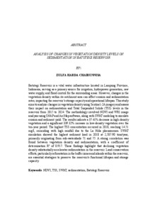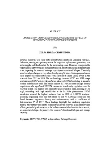 Zulfa , Harda Chairunnisa (2025) ANALISIS PERUBAHAN TINGKAT KERAPATAN VEGETASI TERHADAP SEDIMENTASI WADUK BATUTEGI. FAKULTAS PERTANIAN, UNIVERSITAS LAMPUNG .