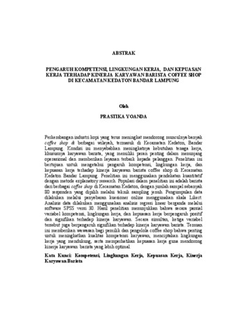 Prastika , Yoanda (2025) PENGARUH KOMPETENSI, LINGKUNGAN KERJA, DAN KEPUASAN KERJA TERHADAP KINERJA KARYAWAN BARISTA COFFEE SHOP DI KECAMATAN KEDATON BANDAR LAMPUNG. FAKULTAS ILMU SOSIAL DAN ILMU POLITIK, UNIVERSITAS LAMPUNG.