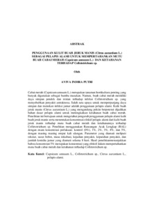 Aviva, Indira Putri (2025) PENGGUNAAN KULIT BUAH JERUK MANIS (Citrus aurantium L.) SEBAGAI PELAPIS ALAMI UNTUK MEMPERTAHANKAN MUTU BUAH CABAI MERAH (Capsicum annuum L.) DAN KETAHANAN TERHADAP Colletotrichum sp. FAKULTAS MATEMATIKA DAN ILMU PENGETAHUAN ALAM, UNIVERSITAS LAMPUNG.